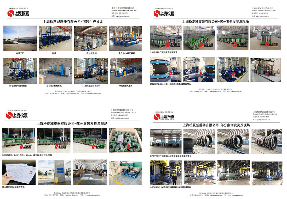 上海松夏減震器有限公司是一家研發(fā)、銷售、服務為一體的綜合性企業(yè),2009年注冊成立,注冊資金2000萬,稅號91310114687364918A,公司位于上海市寶山城市工業(yè)園區(qū),由于2017年上海環(huán)保大整改,目前我公司的橡膠制品生產(chǎn)已經(jīng)全部搬至外省江蘇新工廠和浙江新工廠生產(chǎn)。金屬制品仍在上海工廠。我公司產(chǎn)品廣泛用于化工、建筑、給水、排水、石油、輕重工業(yè)、冷凍、衛(wèi)生、水暖、消防、電力等基礎工程。